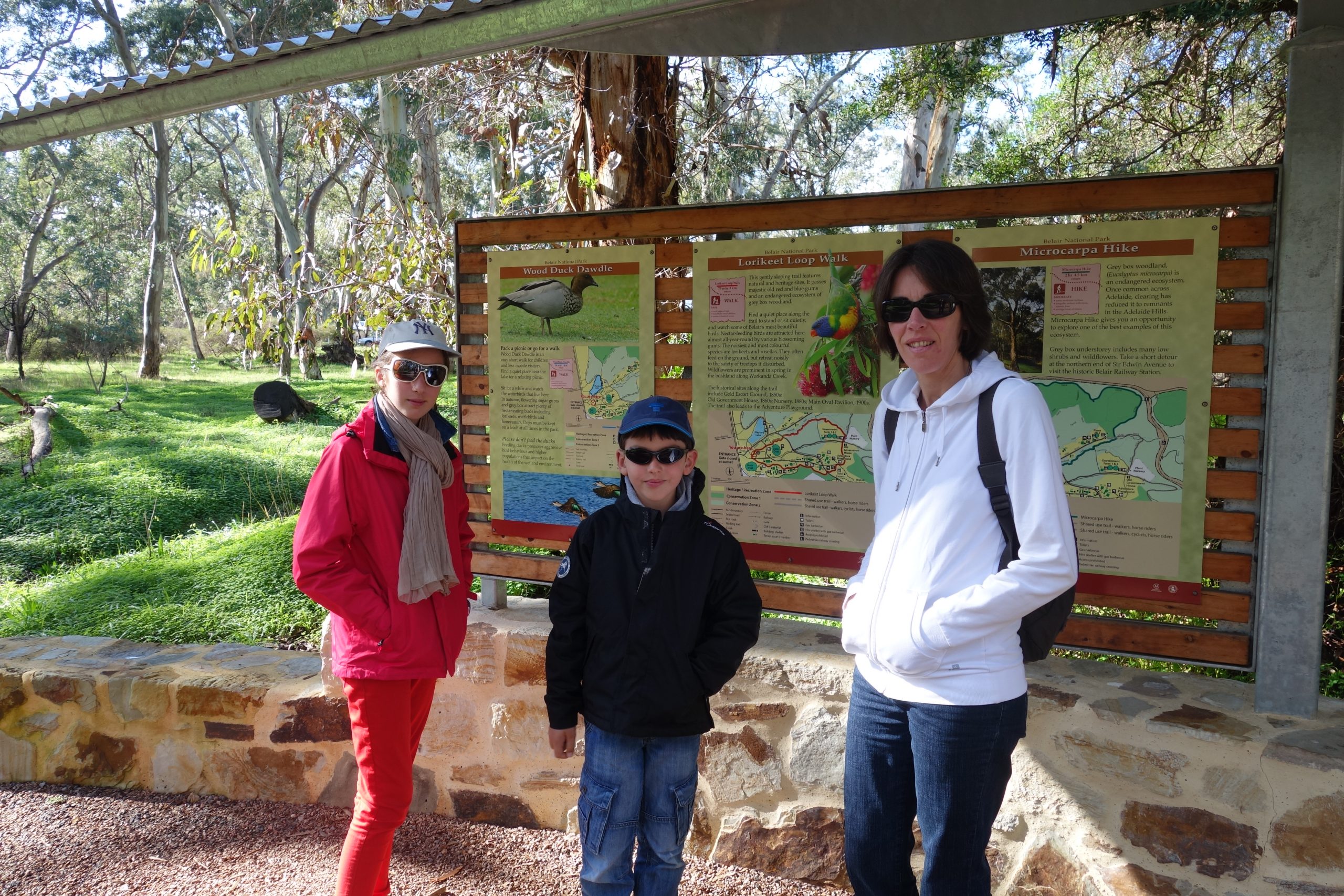 Nous rentrons de balade et nous avons vu un kangourou. Nous étions au National Park de Belair. C’est Arnaud qui l’a trouvé le premier mais apparemment les koalas ne se montrent pas (ils sont peut-être en vacances?) Nous avons aussi vu de très beaux oiseaux!