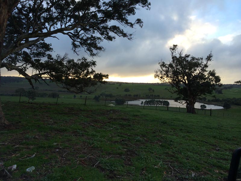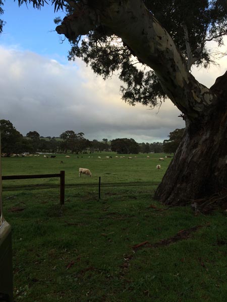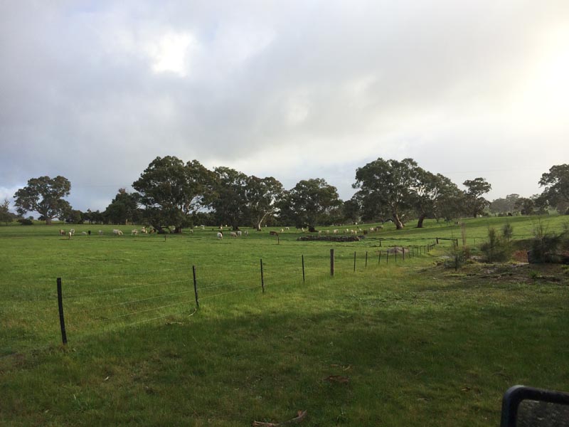 Evidemment, la réalité a un peu dépassé la fiction. Nous avons été invités par des amis d’Elfie (la personne avec laquelle nous échangeons notre maison) qui ont une ferme à l’Est de la Barossa Valley, environ 100 km au Nord Est d’Adelaide. La Barossa est l’une des plus grandes et la plus renommées des régions viticoles (voir le site ici), mais aussi une terre d’élevage, depuis sa conquête par des allemands et anglais notamment au milieu du XVIIIème.