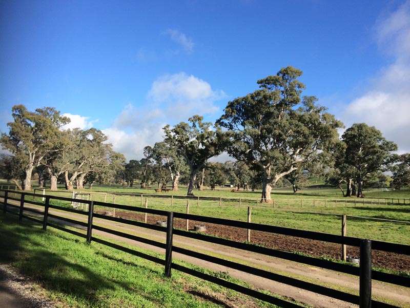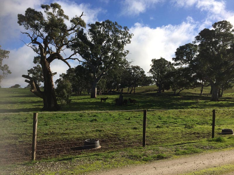 Evidemment, la réalité a un peu dépassé la fiction. Nous avons été invités par des amis d’Elfie (la personne avec laquelle nous échangeons notre maison) qui ont une ferme à l’Est de la Barossa Valley, environ 100 km au Nord Est d’Adelaide. La Barossa est l’une des plus grandes et la plus renommées des régions viticoles (voir le site ici), mais aussi une terre d’élevage, depuis sa conquête par des allemands et anglais notamment au milieu du XVIIIème.