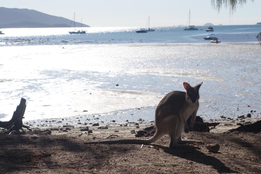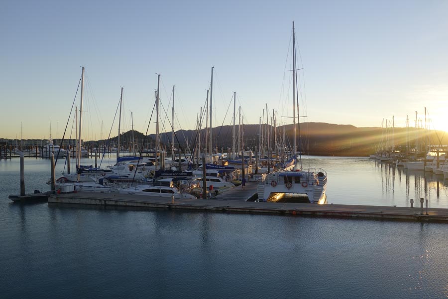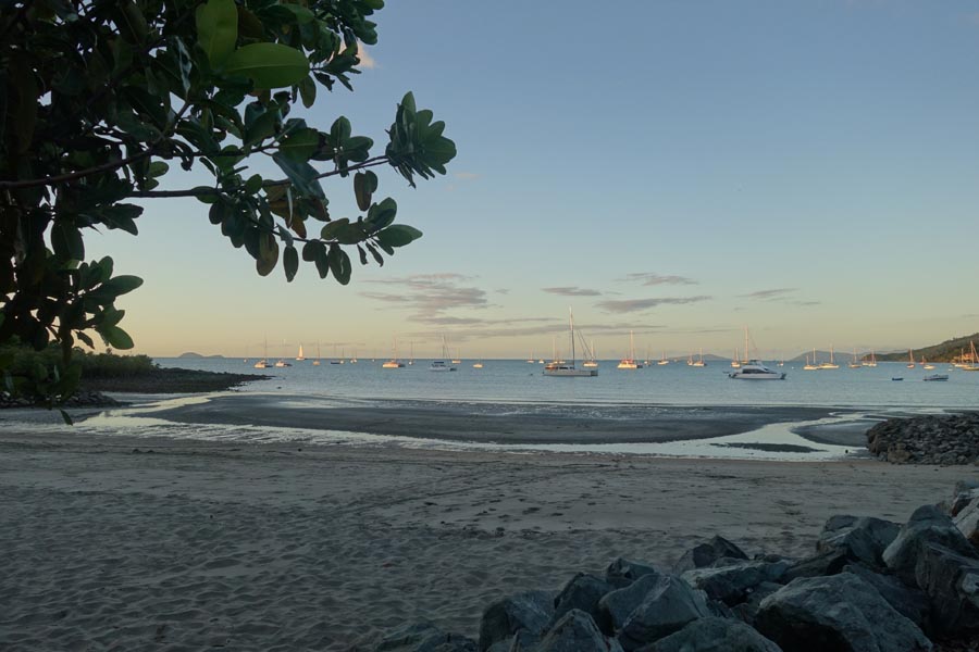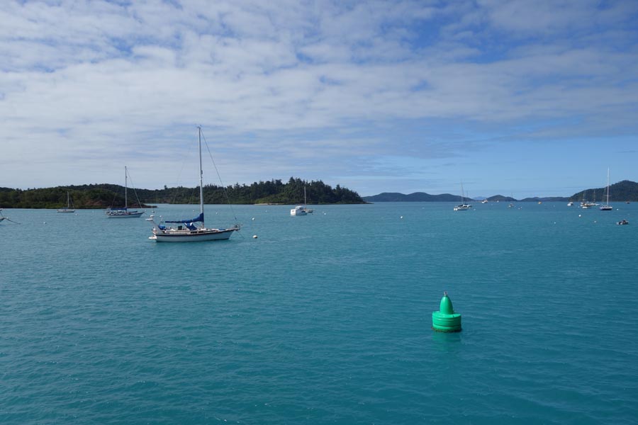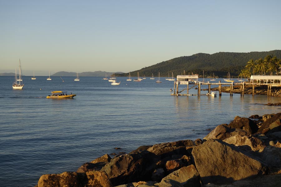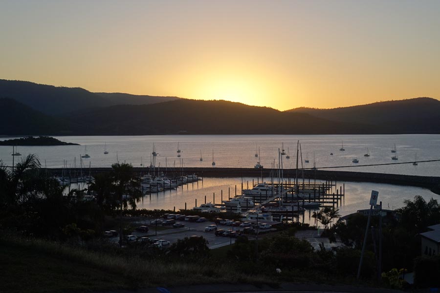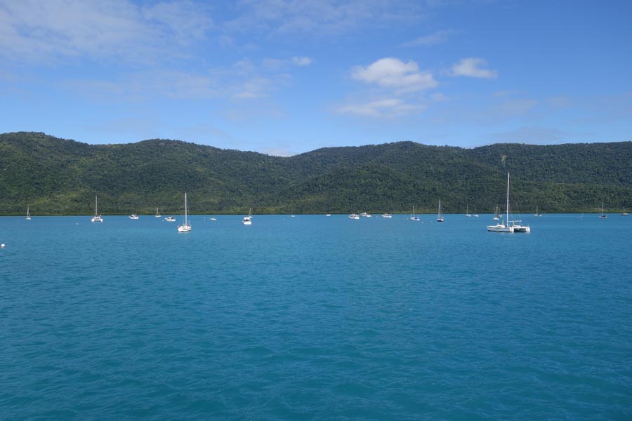 Après des heures de route (2 jours, 1200 km) vers le nord du Queensland où nous avons traversé le bush australien, des champs de canne à sucre, des champs d’orangers, mandariniers, citronniers, une ville tous les 36 du mois pour manger un hamburger ou un sandwich et faire le plein, éventuellement dormir, nous sommes arrivés à Airlie Beach porte d’entrée du paradis…