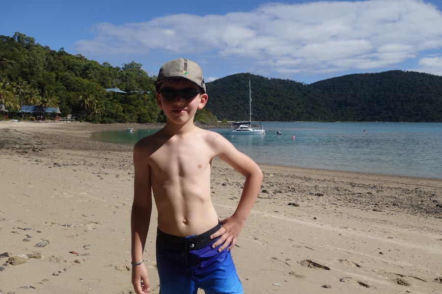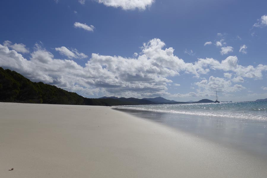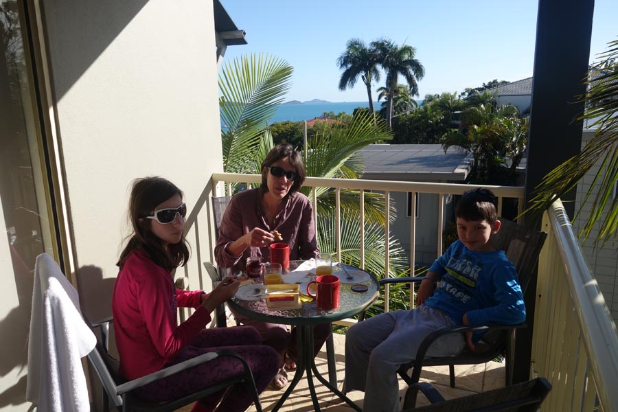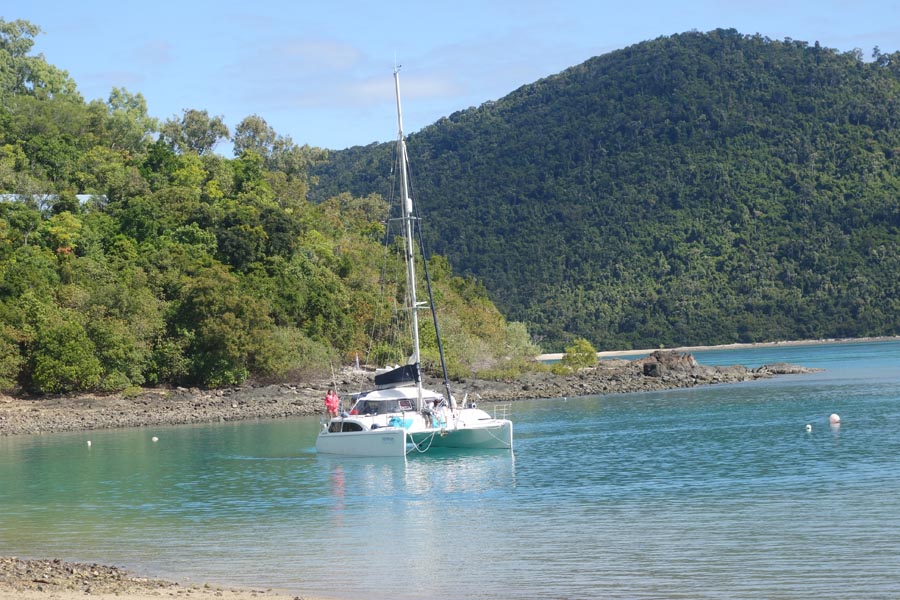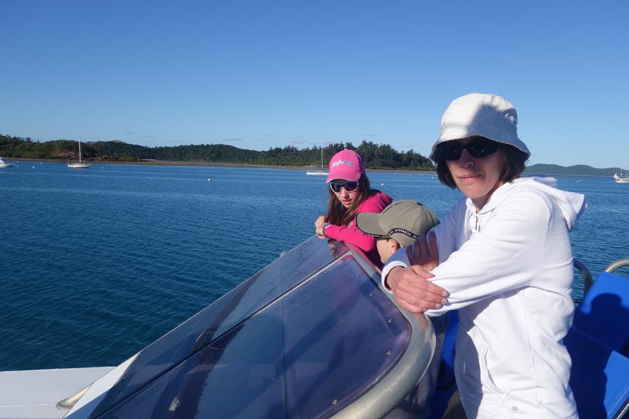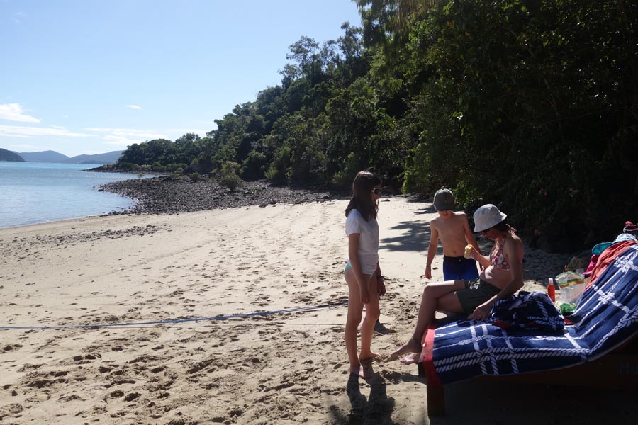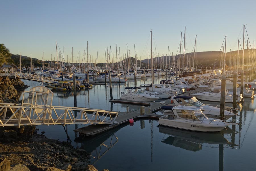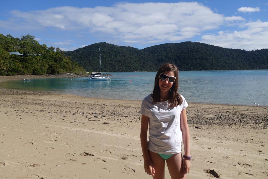 Après des heures de route (2 jours, 1200 km) vers le nord du Queensland où nous avons traversé le bush australien, des champs de canne à sucre, des champs d’orangers, mandariniers, citronniers, une ville tous les 36 du mois pour manger un hamburger ou un sandwich et faire le plein, éventuellement dormir, nous sommes arrivés à Airlie Beach porte d’entrée du paradis…