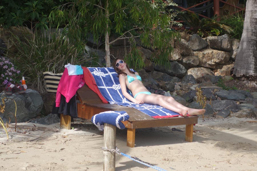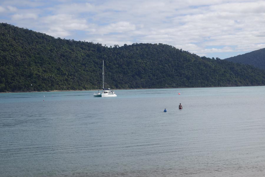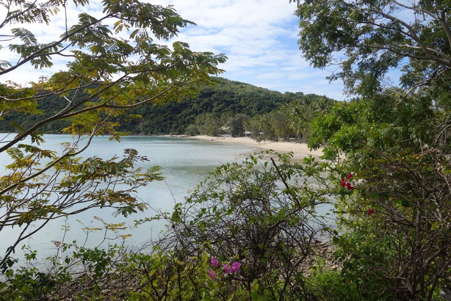 Enfin, nous ne sommes pas encore allés au paradis (en étant toutefois certains d’y aller le moment venu), mais j’aimerais qu’il ressemble à cela : une jolie baie dans laquelle plonge une forêt primaire équatoriale, des eaux cristallines, le bruissement des vagues sur l’océan, des voiliers qui voilent, des oiseaux qui font cui-cui, et des touristes qui font les touristes mais pas trop.