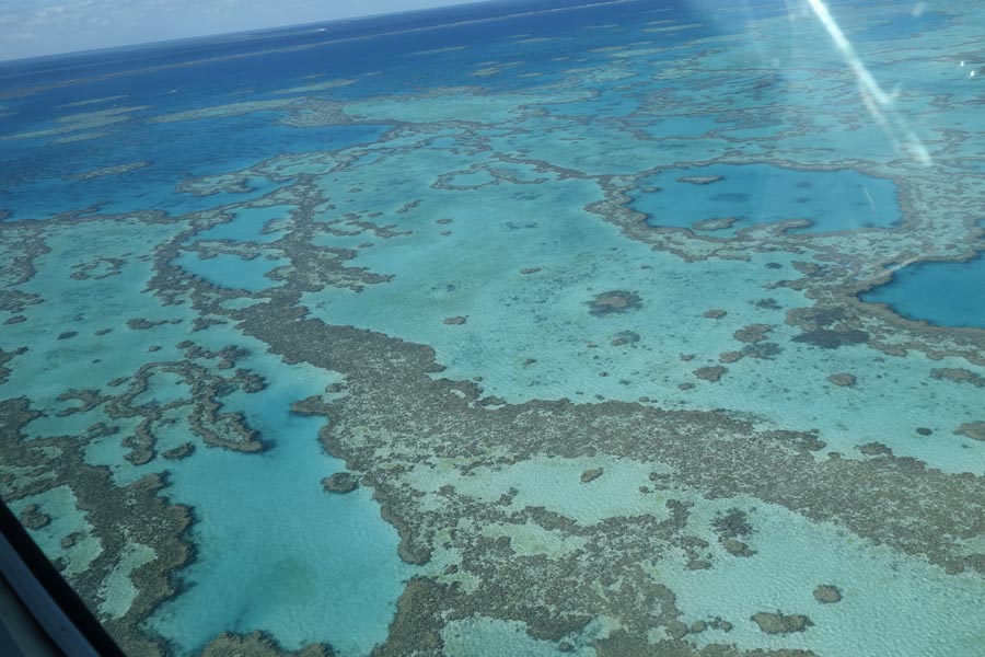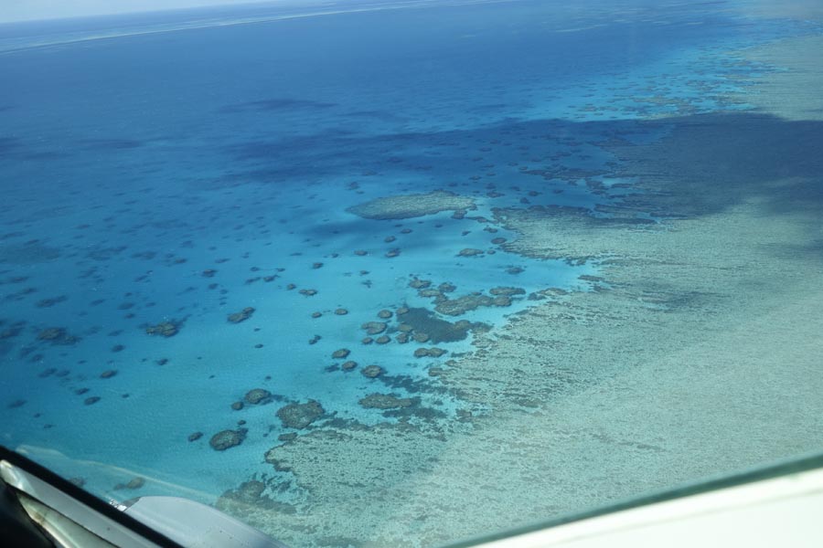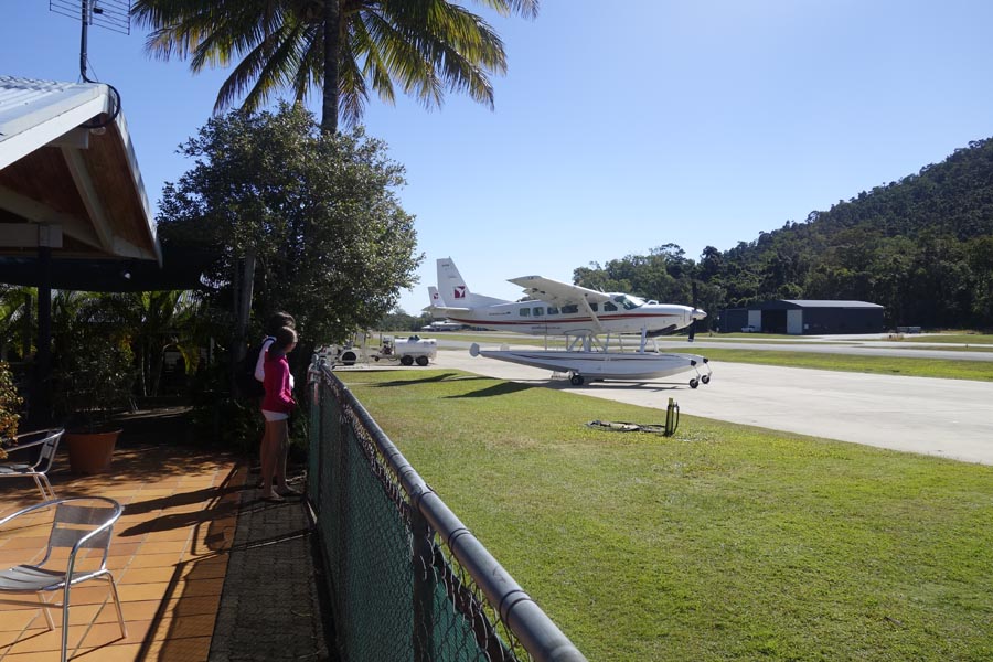 Jour 3 : déjeuner. dépense de l’équivalent du PIB d’un petit pays pays d’Amérique du Sud dans un très joli voyage comprenant : petit tour en avion dans le ciel. Atterrissage dudit avion dans l’eau (on a failli prendre Malaysian Airlines, mais finalement non) – rigolade sur une plage très belle et très grande (il parait que c’est une des 10 plus belles du monde, je veux bien le croire) – re-tour en avion pour arriver tout près de la Great Barrier Reef.
