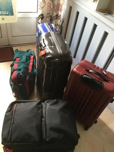 – des valises rangées avant le départ. Soit environ 100 kg y compris 4 bouteilles de vin (de Bourgogne et 1 de Champagne)