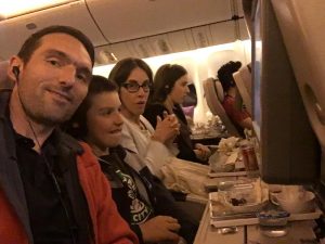 – des gens dans un avion qui sourient car ils n’étaient pas en France le 14 Juillet