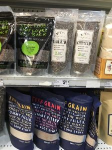 – des variétés de muesli très différentes, organic (bio), gluten free (sans frites gluten), et aussi des graines aux noms rigolos (chia seed, si ca c’est pas rigolo), car l’australien est très graine.