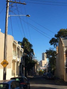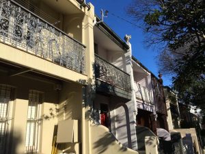 Ballade 1 : Paddington vers Circular Quai. Réalisée un jour après un RV business. 1 bonne heure de marche. Paddington est un quartier connu pour ses « terrace houses », des maisons datant d’environ 100 ans, mitoyennes, sur des rues au carré dans une petite colline, avec de belles grilles en fer forgé. Un quartier « bobo » avec d’innombrables cafés, boutiques de vêtement…