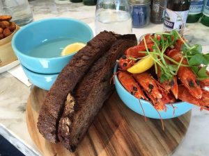 Je rejoins ensuite Valérie à Shelley Beach, à 15 min de l’appartement, petite baie adorable où nous apprécions la vue, une bonne bière, quelques crevettes et des frites maison! C’est vendredi, c’est permis!