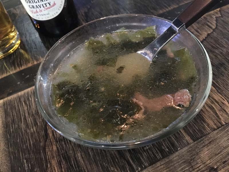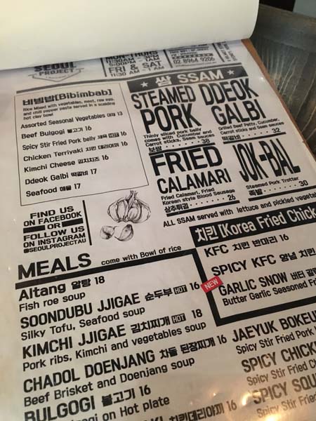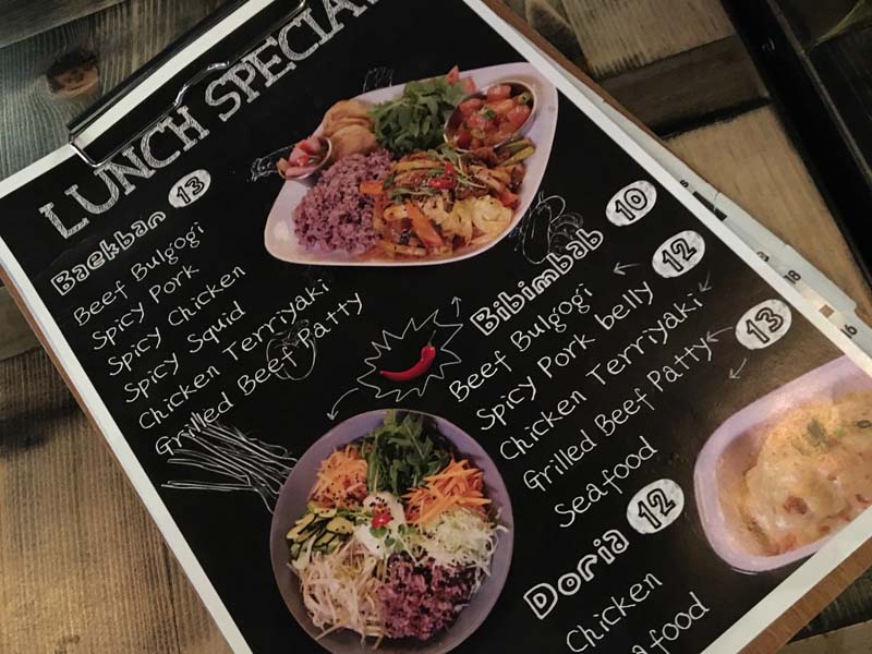 Il travaille toujours. Là, c’était un restaurant Coréen après un RV. C’était bon. Une sorte de wok épicé avec du boeuf, du kimchi (chou mariné épicé), du riz, des carottes marinées, une olive marinée ET très épicée…et du surimi frit! Je n’y avais pas pensé…mais bon en même temps on peut pas penser à tout, hein.