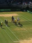 Pour l’anniversaire de la chipette (va falloir arrêter de l’appeler comme ça !), nous sommes allées Alice et moi voir un match de tennis de coupe Davis à l’olympic park, Australie-Slovaquie, pendant que les garçons sont restés à Manly faire du body-board.