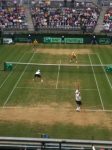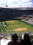On a commencé par un long voyage en ferry, parce que le parc olympique il est pas tout près ! On a acheté nos frites et nos galettes turques feta-épinards et on s’est installé dans la Ken Rosewall Arena pour regarder un match de double sur gazon: ça fuse ! Il n’y avait pas beaucoup d’échanges mais c’était sympa. On a espoir de venir voir Guillaume et Alexandre Dejean dans quelques années quand ils joueront le titre contre l’Australie avec l’équipe de France !