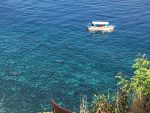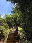 La montée dure 2 heures, sous un soleil de plomb, mais une partie du chemin est abritée. On est presque les seuls touristes, mais bcp de balinais montent aussi, avec des offrandes. De petits stands tous les 200 mètres avec des bouteilles d’eau, des scooters pour faire la petite portion de route carossable…on peut dire que religion et business se mélangent sans problème. C’est d’ailleurs le cas partout : les temples sont des lieux hyper fréquentés, et pas que par les touristes, donc ce sont aussi des lieux de vie, avec des restaurants plus ou moins sophistiqués, des échoppes où l’on vent tout et n’importe quoi…