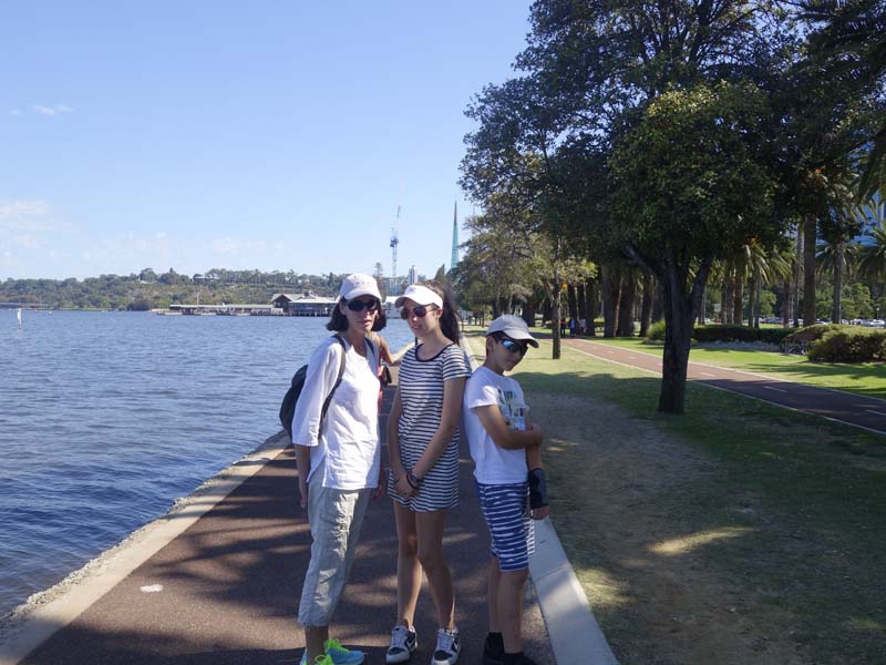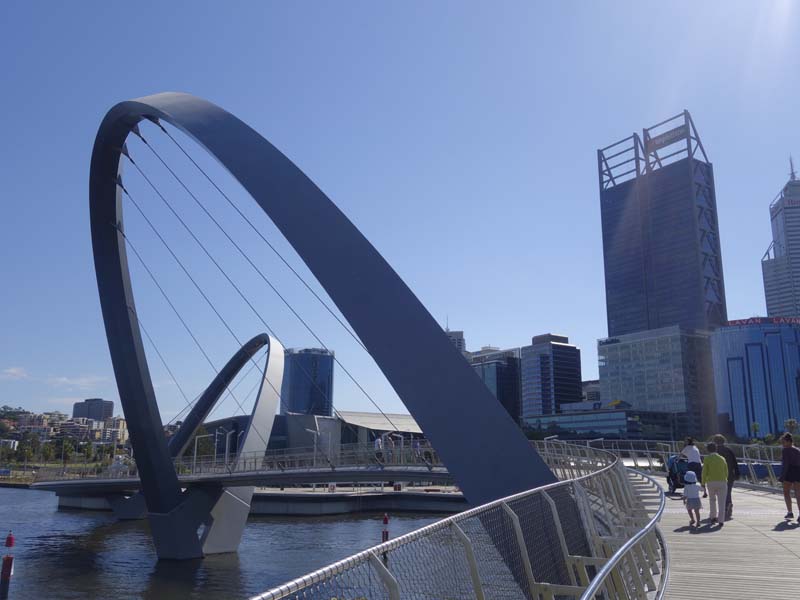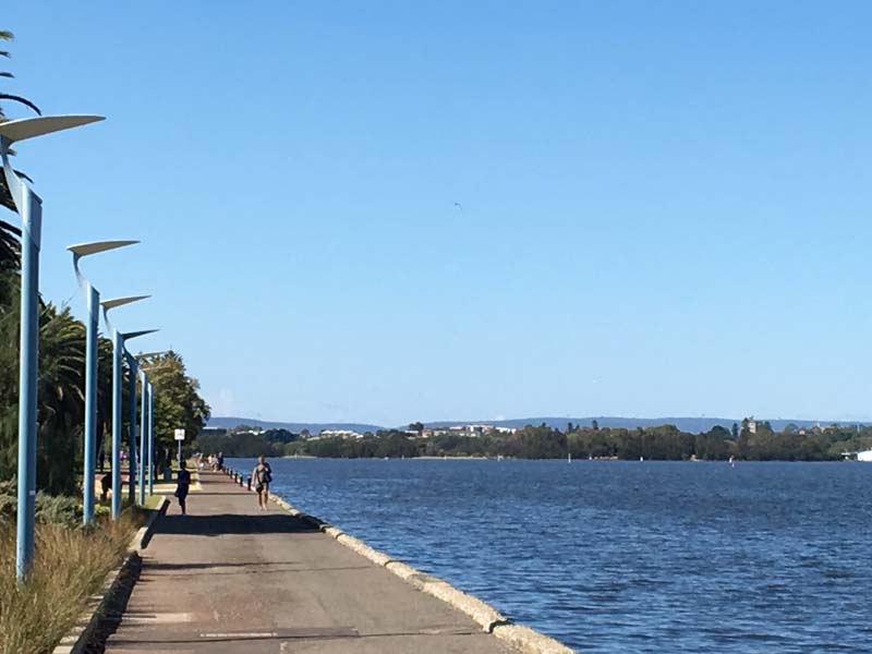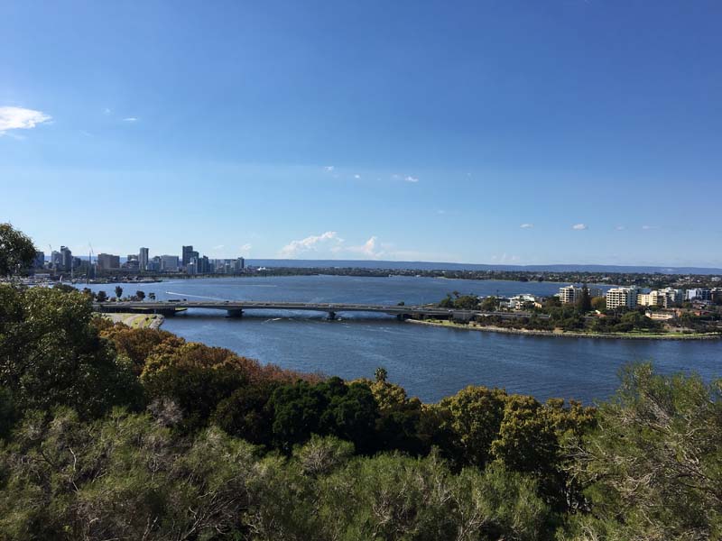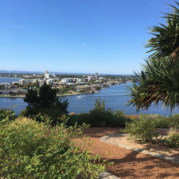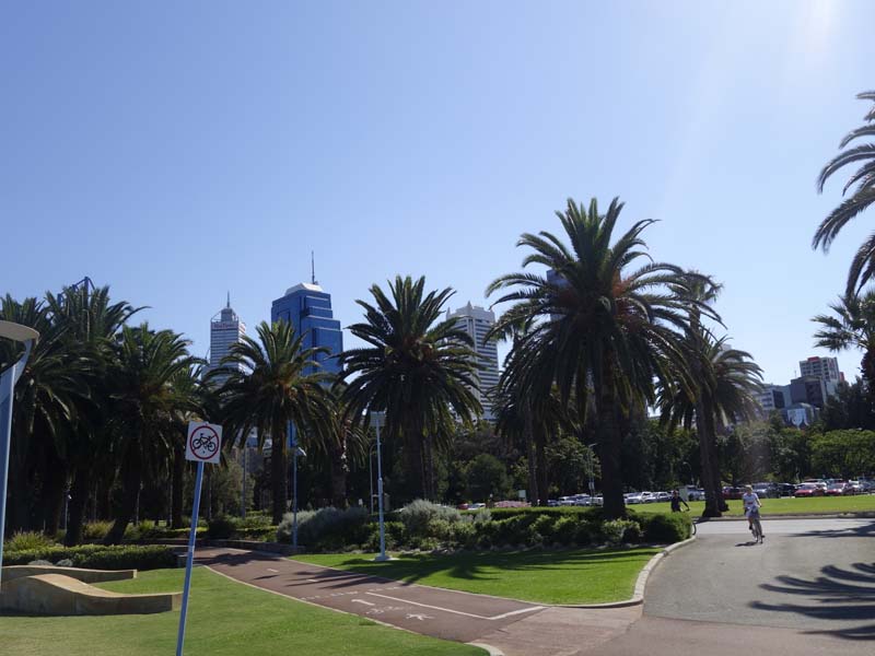 Sous un grand soleil. King’s park : 400 ha de verdure. Au bord de la Swan River. Compétition de BBQ. Architecture. Plage.