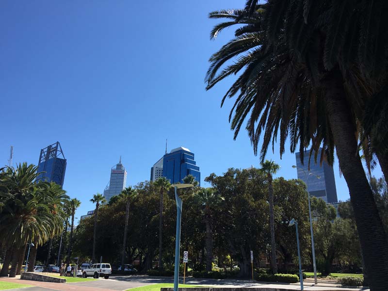 Perth, c’est un peu comme le mix entre Sydney et Adélaide. On retrouve facilement le côté ‘Grande Ville’ mais aussi la baie, les grosses vagues, et des grattes-ciels que l’on adore à Sydney. On ajouterait quelques ferrys jaunes et verts et on s’y croirait presque. De l’autre côté, Perth est aussi étalée qu’Adelaide, en même temps c’est pas la place qui manque. JD