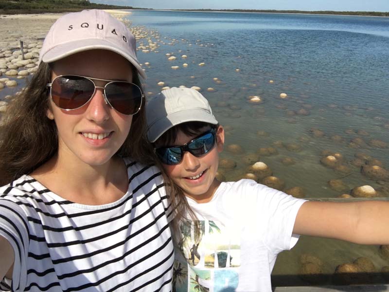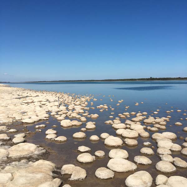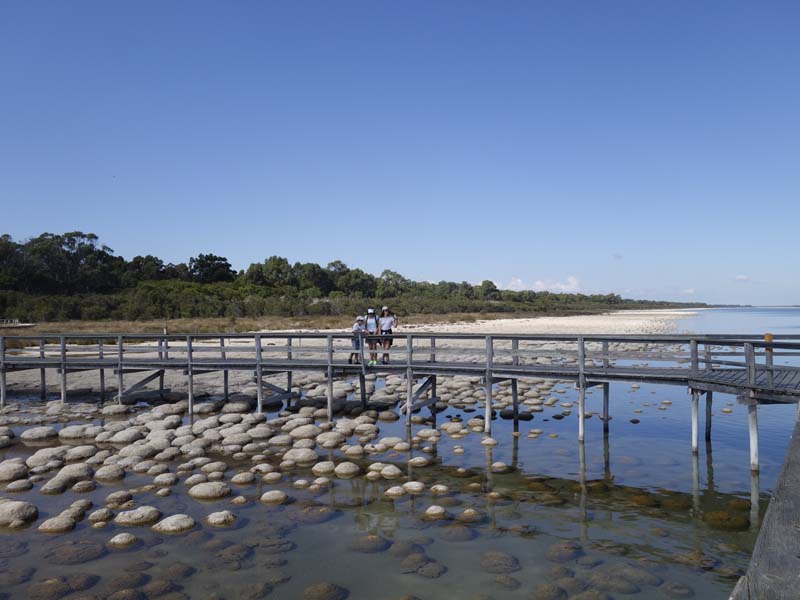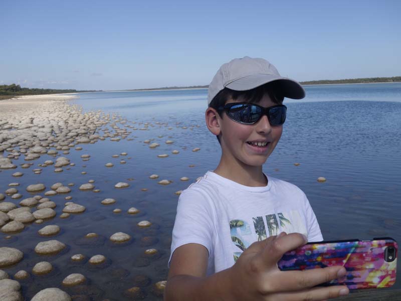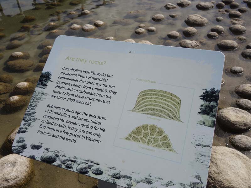 Première journée hors de la ville, nous roulons entre la côte de l’océan indien et des grands lacs. Les routes sont en super bon état, cela dit c’est pas le gel et la pluie qui les abiment ! C’est très agréable et nous faisons une pose dans un parc naturel qui abrite un des lacs, lui même habité par des thrombolites plus communément appelées stromatolites en français (je sais pas si ça passe pour les chiffres et les lettres ce mot là !). Quoi qu’il en soit, ces gros trucs ronds ne sont pas des pierres mais des organismes vivants depuis des millions d’années. En lisant Wikipedia, j’ai appris qu’il y en a aussi tout près de chez nous dans le ruisseau du Dard à côté de Lons-Le-Saunier: promis j’irai les voir aussi ! *Dans la forêt adjacente, nous avons également croisé des araignées d’une taille assez incroyable et je vous raconte pas la toile…