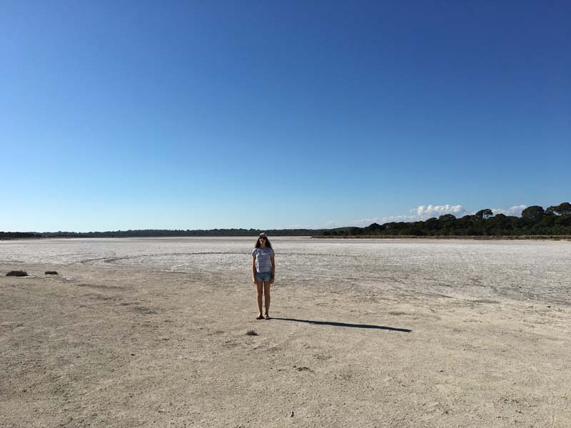 Petit arrêt à Preston beach pour un petit gouter et une petite pose sympa. On se croirait sur une plage des Landes, c’est dingue ! Petite différence quand même, les pêcheurs locaux attrapent des saumons dans l’ocean ici…A l’entrée (ou à la sortie) de la ville, il y a des lacs asséchés qui témoignent du climat local (je précise qu’on est venu en automne et qu’il n’est pas tombé une goutte de la semaine: ça doit pas parler à nos amis Basques et Picards ça !).