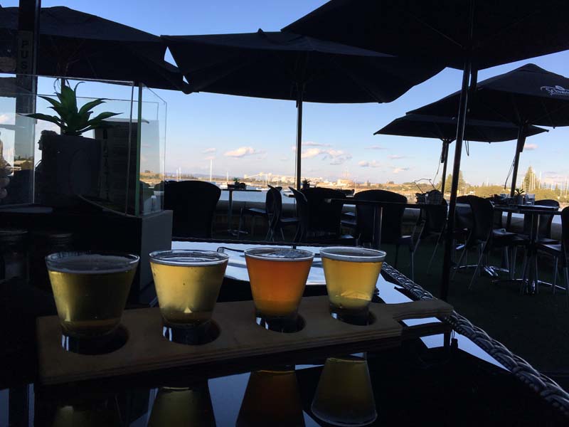 Une bonne degustation de bières locales pour finir la journée après avoir vu un dauphin nager paisiblement devant la terrasse du bar…Valou