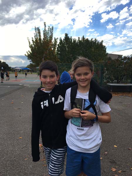 – Arnaud et ses copains le jour du départ vers un Adventure Camp de 2 jours organisé par l’école. Il reviendra entier. Il a fait du canoë, tenu un serpent dans les mains (pas pendant qu’il faisait du canoë), oublié de se doucher. Le bonheur.