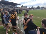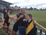 Samedi, à 2 semaines du départ, Arnaud continue sur sa lancée sportive! Après un match avec son équipe d’Australian Football League (raccourci : footy) ce matin, son équipe était invitée à jouée avec les pros sur le terrain du quartier d’à côté. Le tout sous un grand soleil d’hiver. Ambiance très familiale. Un bon moment!